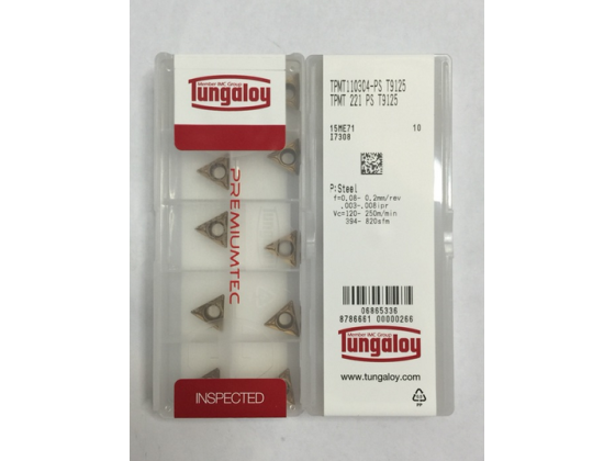 | P | T9125 | T9125 钢件的轻型-中等断续钢件加工中,大幅度提高了抗崩刃性 | CVD涂层 |