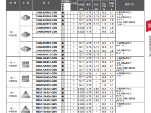 | H | BX330 | BX330 淬火钢精加工用材质 用特殊粘结剂结合微粒CBN,刃口保持性良好,在精加工时发挥优良的性能 | 超高压烧结体T-CBN |